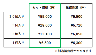 希望小売価格は次の通りです。まどめ買いの方がお得になっています。 |
